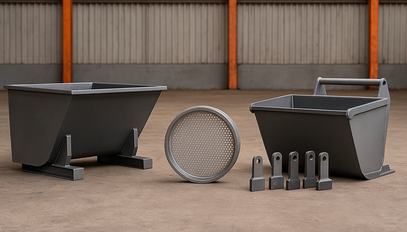 Caçambas, peneiras e martelos para moinho com alta resistência e eficiência para uso industrial e agrícola.